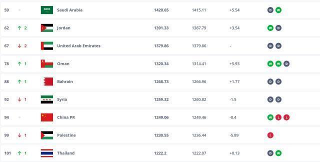 在上期公布的FIFA排行后,中国男足参与了东亚杯。其中,中国男足0比3不敌韩国、0比2不敌日本、1比0投降中国香港,技能积分较上期减少了0.4分,为1249.06分。