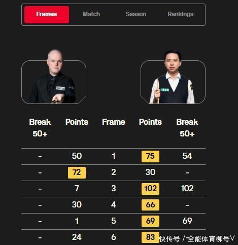 第五局,精真金不怕火的局间休息转头之后,肖国栋打出单杆83分,83-0零封范争一,3-2再次提高。第六局,肖国栋捏续发力,他又打出单杆81分,81-0再次零封范争一,4-2扩猛提高上风并获取两个赛点。