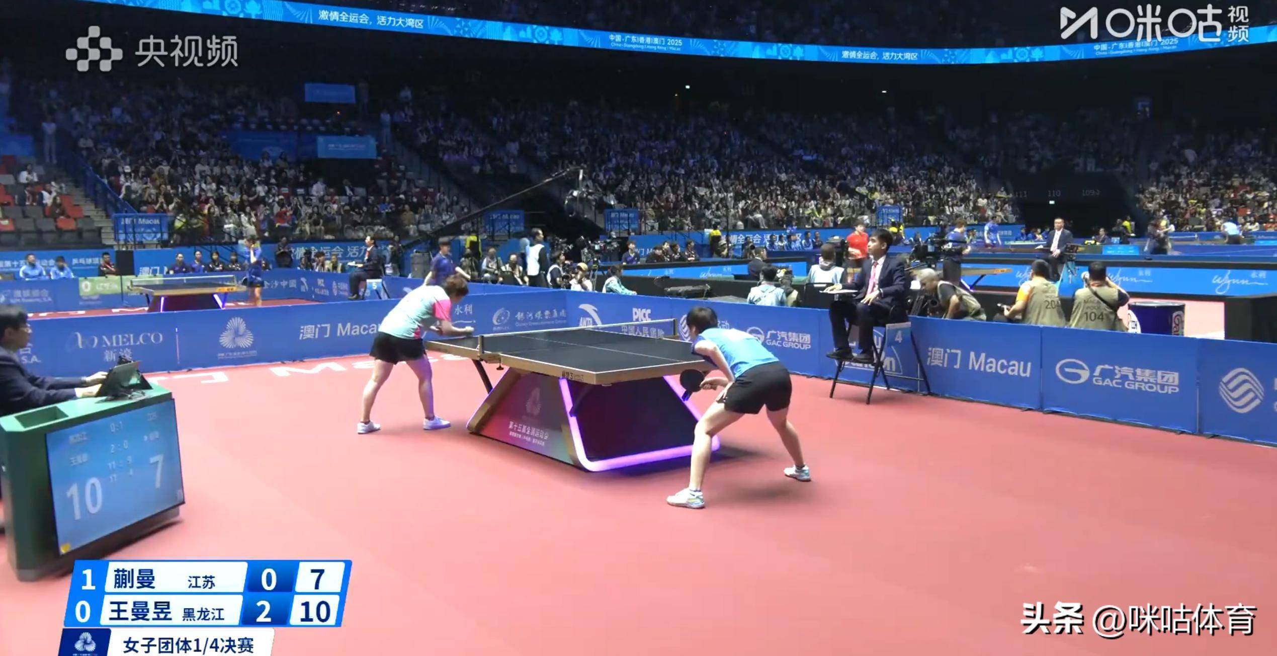 冠军本体!全运女团1/4决赛:王曼昱3-0蒯曼 黑龙江1-1追平江苏